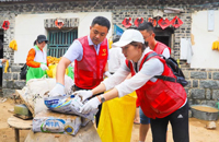 2019年8月6日,興業(yè)集團組織13名黨員和共青團員組成志愿服務(wù)隊,趕赴西湖鎮(zhèn)洪澇災(zāi)區(qū)開展志愿救援活動。