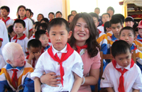 2011年6月1日,集團人力資源總監(jiān)李俐萱和聾啞兒童一起歡度六一。