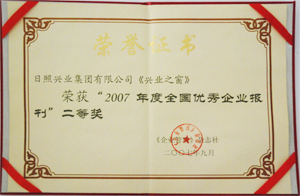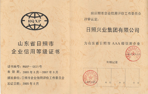 ·2007年3月,日照市企業(yè)信用評價工作委員會評審認定興業(yè)集團為“山東省日照市AAA級信用企業(yè)”
