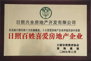·2007年3月,興業(yè)房地產(chǎn)被日照市消費者協(xié)會日照百姓喜愛房地產(chǎn)企業(yè)