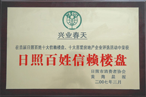 ·2007年3月,興業(yè)春天被日照市消費者協(xié)會評為“日照百姓信賴樓盤”