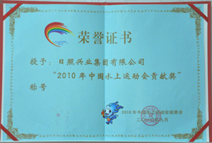 ·2010年9月,授予興業(yè)集團(tuán)“2010年中國(guó)水上運(yùn)動(dòng)會(huì)貢獻(xiàn)獎(jiǎng)”稱號(hào)
