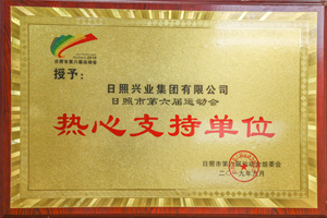 2019年9月,日照市第六屆運動會組委會授予興業(yè)集團“熱心支持單位”