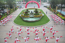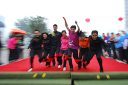 2013年9月28日,第九屆職工運(yùn)動(dòng)會(huì)在興業(yè)財(cái)富廣場(chǎng)舉行,圖為社區(qū)中老年文體活動(dòng)俱樂(lè)部精彩的開幕式表演。  |