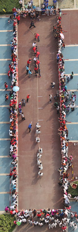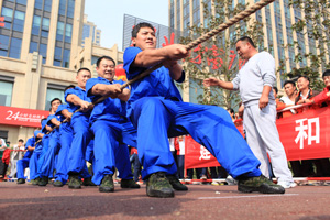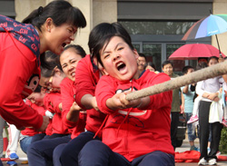 當(dāng)天,來自興業(yè)集團(tuán)各下屬單位的8支代表隊(duì)476名運(yùn)動員精神飽滿地參加了“團(tuán)體跳繩”、“開火車”、“協(xié)作運(yùn)球接力”、“車輪滾滾”、“滾雪球”、“拔河”等團(tuán)體項(xiàng)目的比賽,整個現(xiàn)場氣氛熱烈,充滿激情,充分展示了“務(wù)實(shí)、創(chuàng)新、拼搏、進(jìn)取、奉獻(xiàn)”的興業(yè)精神和活力、和諧的企業(yè)風(fēng)采。另外,興業(yè)社區(qū)中老年文體活動俱樂部在開幕式上進(jìn)行了太極拳和健身操表演。精彩的開幕式表演和緊張激烈的比賽吸引了眾多市民駐足觀看。