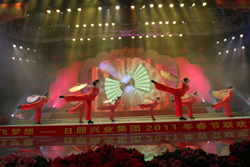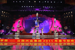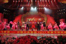 “放飛夢想”興業(yè)集團(tuán)2011年春節(jié)聯(lián)歡晚會歷時2個多小時,節(jié)目形式包括小品、歌舞、雜技、黃梅戲、二人轉(zhuǎn)、器樂合奏、詩歌朗誦等,內(nèi)容豐富,精彩紛呈;特別是五洲唱響樂團(tuán)、東方辣妹的加盟,使演員陣容更加強(qiáng)大;借助千米演播大廳極具現(xiàn)代化的舞美燈光效果驚艷四座,充分展示了興業(yè)集團(tuán)的企業(yè)實(shí)力,謳歌了興業(yè)人艱苦奮斗、團(tuán)結(jié)協(xié)作、拼搏進(jìn)取的創(chuàng)業(yè)精神和興業(yè)報國的高尚情懷,也為港城人民獻(xiàn)上了一場華麗的文化盛宴。