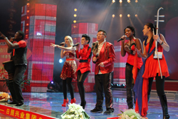 晚會的第三篇章在五洲唱響樂團(tuán)的歌聲中唱響,一首《We are The World》,激情四溢,來自世界五大洲的六名優(yōu)秀歌手載歌載舞,震撼全場,在觀眾們熱烈的歡呼聲中,他們又演唱了《你我是一家》、《唱響五洲》兩首大家耳熟能詳?shù)母枨,場下歡呼雷動,掌聲澎湃,引爆全場激情!稓g天喜地》是興業(yè)社區(qū)的中老年朋友們自編自演的舞蹈, 形式歡快喜慶,節(jié)奏緊湊利落,加上配合演員們嫻熟的舞步,充分展現(xiàn)了中老年人的良好精神風(fēng)貌和藝術(shù)才華!懊慷淅嘶ㄒ粯优炫,每個夢想都值得灌溉,眼淚變成雨水,就能落下來,每個孩子都應(yīng)該被寵愛!边@是來自興業(yè)希望小學(xué)的20多名小學(xué)生代表用真情演繹的公益歌曲《最好的未來》,他們純真的童音唱出無比質(zhì)樸的情感,令全場觀眾唏噓動容,對孩子們的表演報以熱烈地掌聲!按河曜虧櫺撵`,春風(fēng)吹暖心扉,興業(yè)的春天最美;春色為我們添彩,春光為我們增輝,興業(yè)人的笑容最美;山一樣的氣魄,海一樣的魂,春天里走來了興業(yè)人!边@首《興業(yè)春天》是歌唱興業(yè)人自己的歌曲,自2010年在興業(yè)集團(tuán)春晚推出以來,已在興業(yè)人中間廣為傳唱。當(dāng)這熟悉的旋律再次響起時,全場觀眾不禁心潮澎湃,撫今追昔,激起無限情思。配樂詩朗誦《興業(yè)情懷》從一個男孩和媽媽的對話配以鷗鳴和海浪交織的樂章中緩緩拉開,三名領(lǐng)誦人用淳樸真摯的語言抒發(fā)對興業(yè)的無限熱愛,40多名職工組成的合誦時而深沉、時而高亢;時而溫情、時而激昂,深情謳歌一代興業(yè)人艱苦創(chuàng)業(yè)、傾情公益、興業(yè)報國的高尚情懷,令觀眾們心潮澎湃,感慨萬千,更激發(fā)了大家放飛夢想,開創(chuàng)美好未來的激情和斗志!俺綁粝胍黄痫w,你我需要真心面對,讓生命回味這一刻,讓歲月銘記這一回!庇膳嵊、王蓬等六名青年職工演唱的《超越夢想》,充滿激情,充滿力量,也為晚會劃上了一個圓滿的句號。